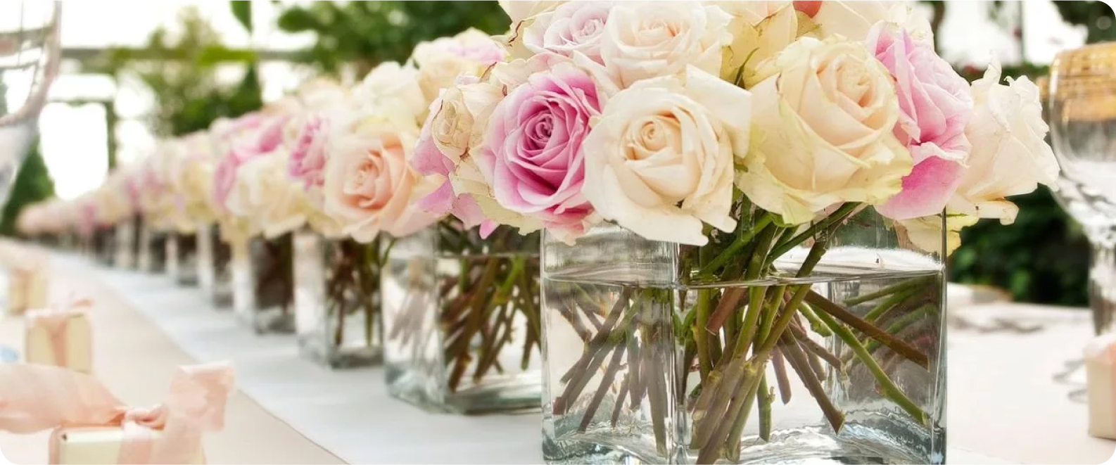 Живые цветы станут эффектным дополнением к праздничному декору и поднимут настроение каждому гостю.